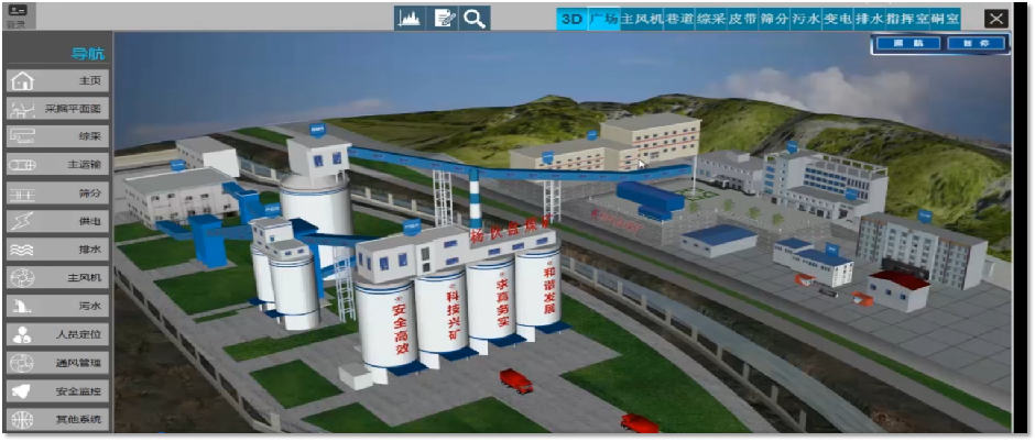 在精准三维空间中实现矿山全要素环境虚拟、安全监控信息对接、综合自动化系统控制、矿井生产辅助设计、网络化信息发布和会商决策支持,从根本上提升矿山安全管理信息化水平,为矿产资源的有序开发利用和矿山安全生产、抢险救灾提供技术支撑。