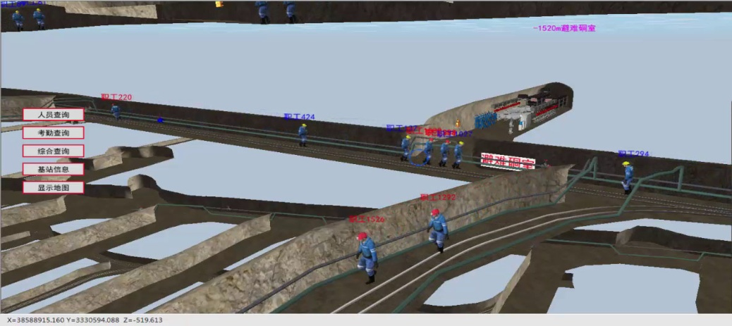 (3) 井下场景一目了然,设备位置精确定位,利用VR场景,为作业施工提供辅助教学
